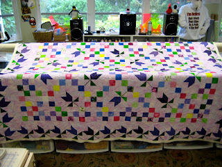 Until then, it's quilting and more quilting! This week so far I have worked on the biggest quilt I have ever done, and a couple of really nice custom jobs. It finally rained here and my husband and all his landscaping plants are very pleased. It's always easier to work when it's raining outside the window. The photos prove that!! Enjoy!