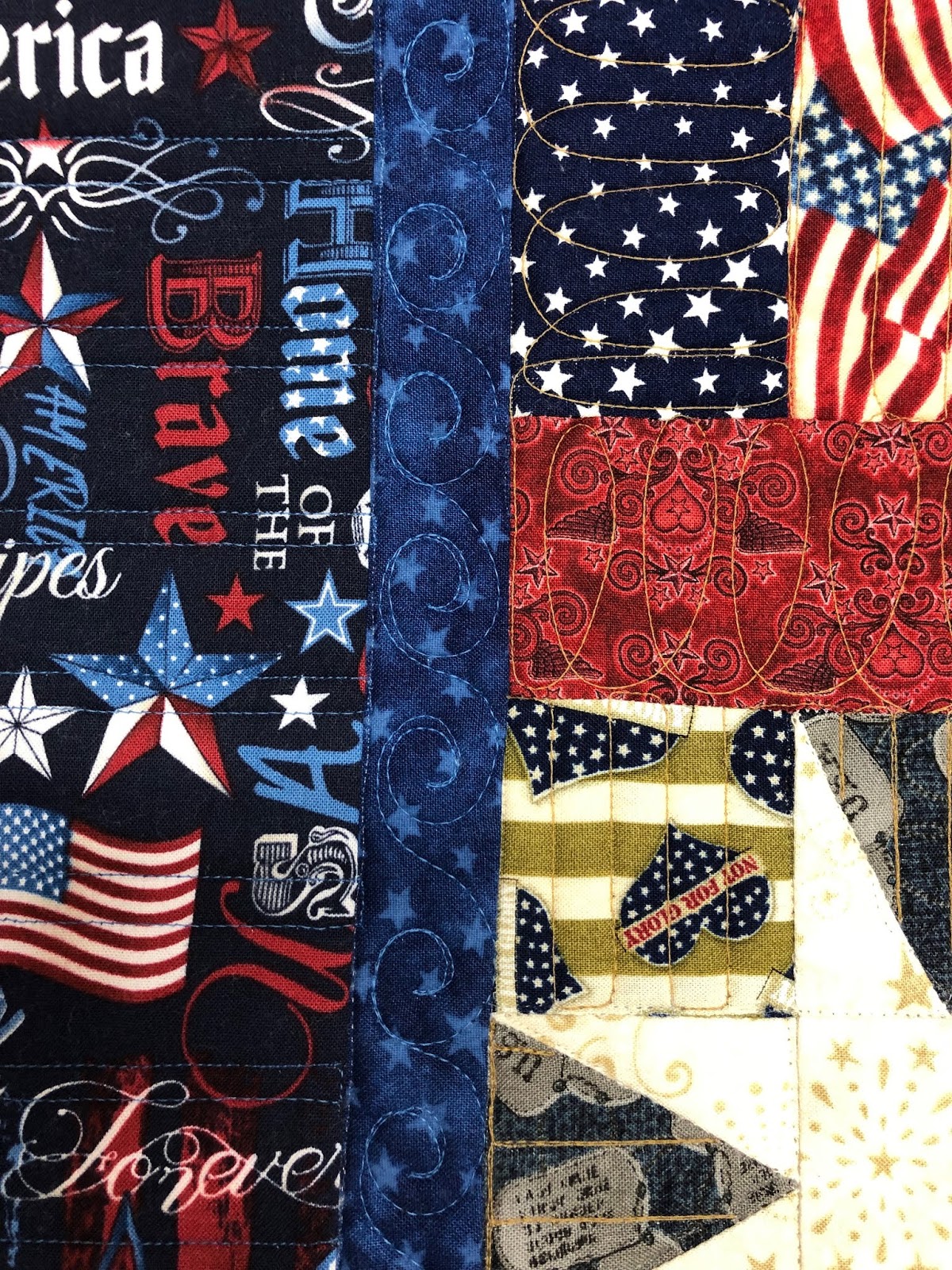 | The pieced back was also a quilting challenge. I plan to talk with the quilter and see if she would like a lesson or two. She is really new and always makes big quilts. Measuring and cutting accurately are important. So is that quarter inch seam!! |