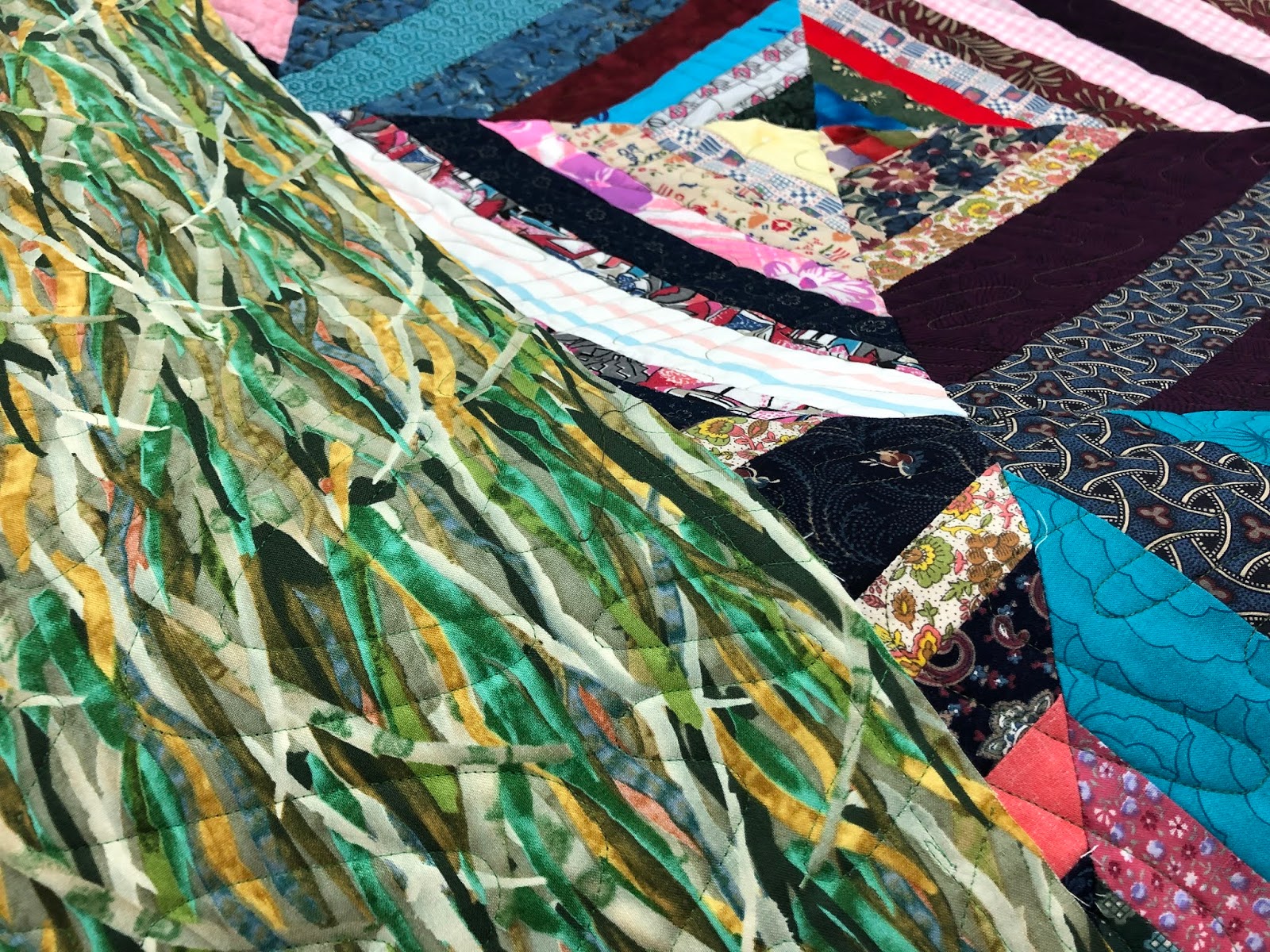 The backing led me to use the green thread for the quilting. |