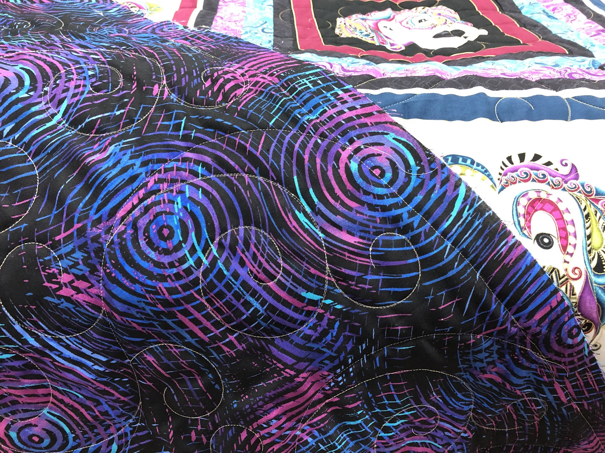 I chose the panto because of the focus fabric used for the backing and the borders on the quilt top.